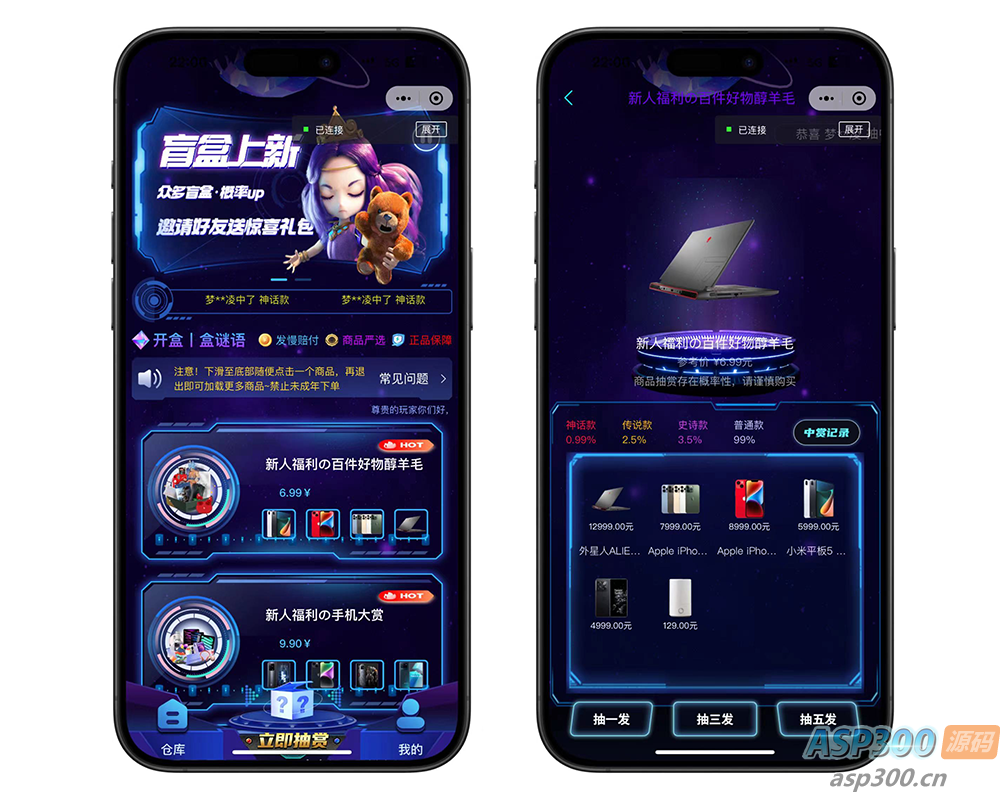 以下是潮玩UI盲盒商城源码的相关展示: