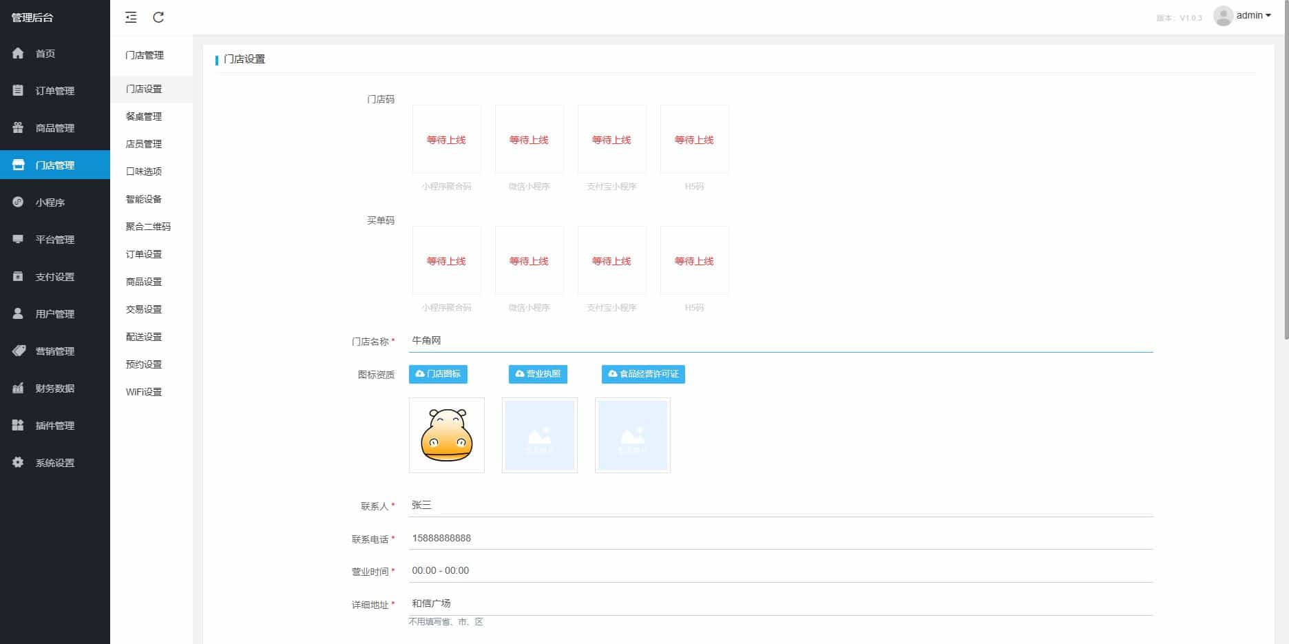 ⑦门店管理智能化:包括餐桌、店员、口味、云设备、二维码、wifi及预约订桌等管理功能,实现门店运营自动化。