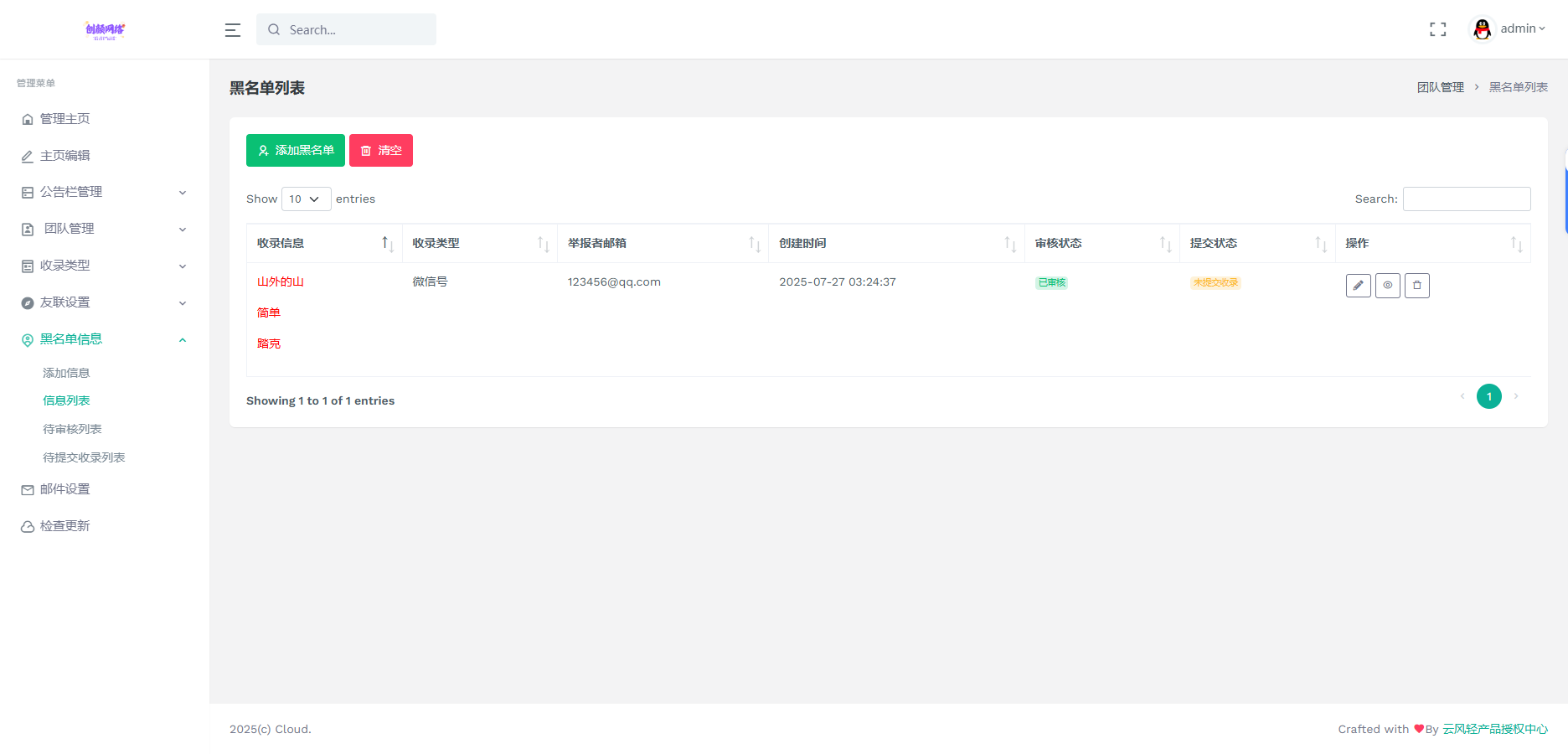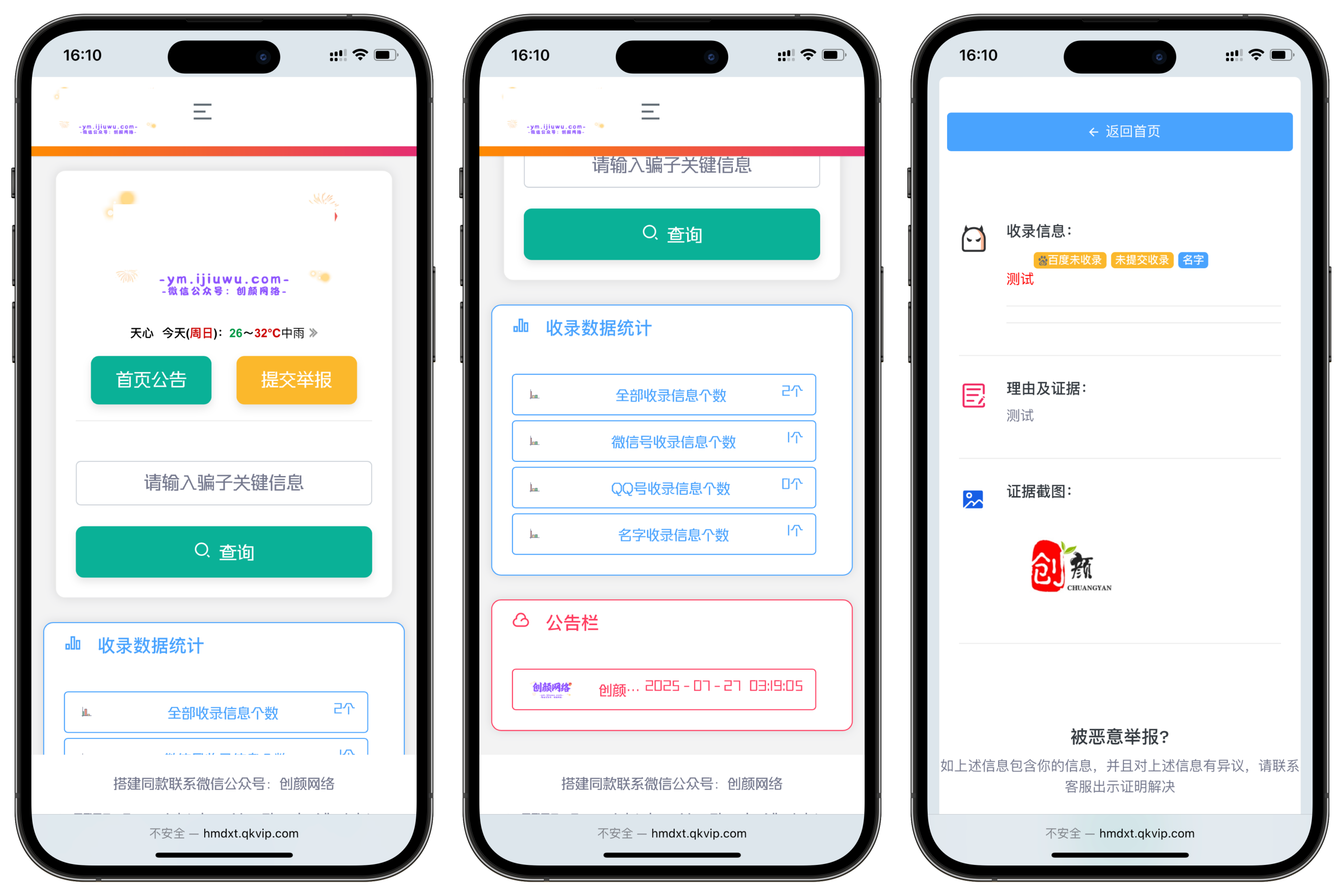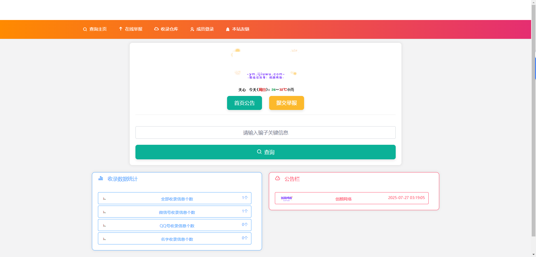 该系统是一款开源的黑名单举报查询系统,具有以下核心功能: