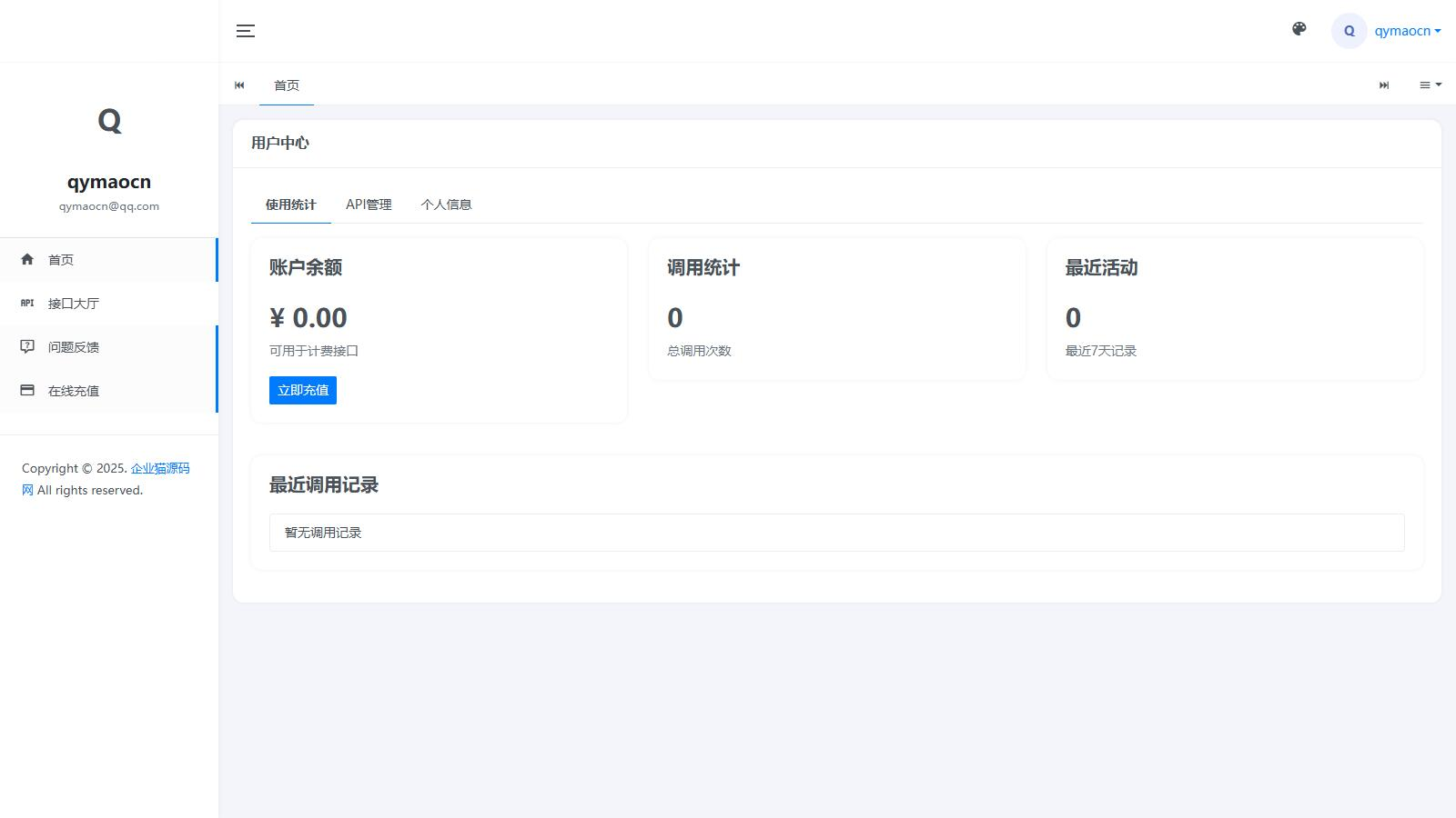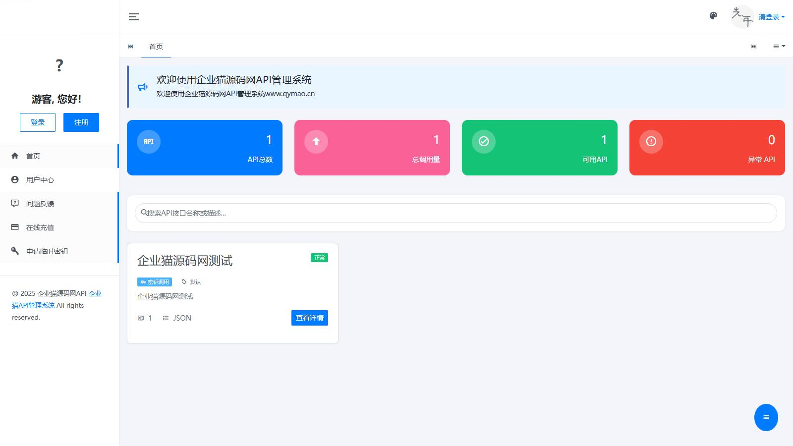 6. API详情页集成在线测试工具,已登录用户可自动获取密钥,便于API测试与计费。