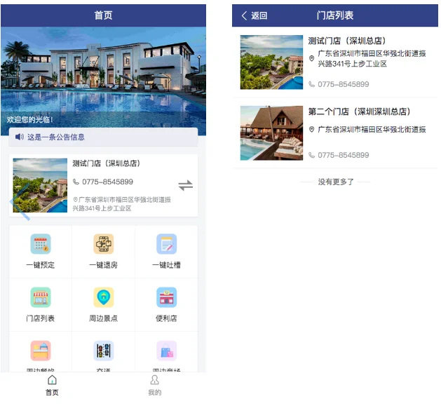 3. 多门店支持:配置多门店或单门店,自动获取最近门店,按门店搜索房间状态。