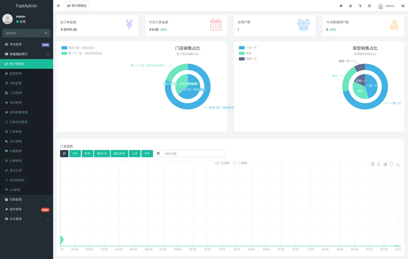 12. 统计分析:按年月日统计订单数与金额,统计当日订单及注册用户数。